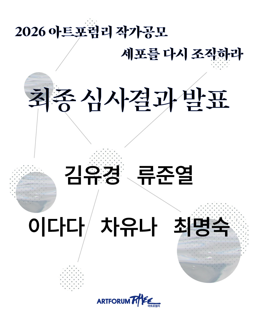 2026 아트포럼리 작가공모 <세포를 다시 조직하라>에 지원해 주신 모든 분들께 진심으로 감사드립니다.